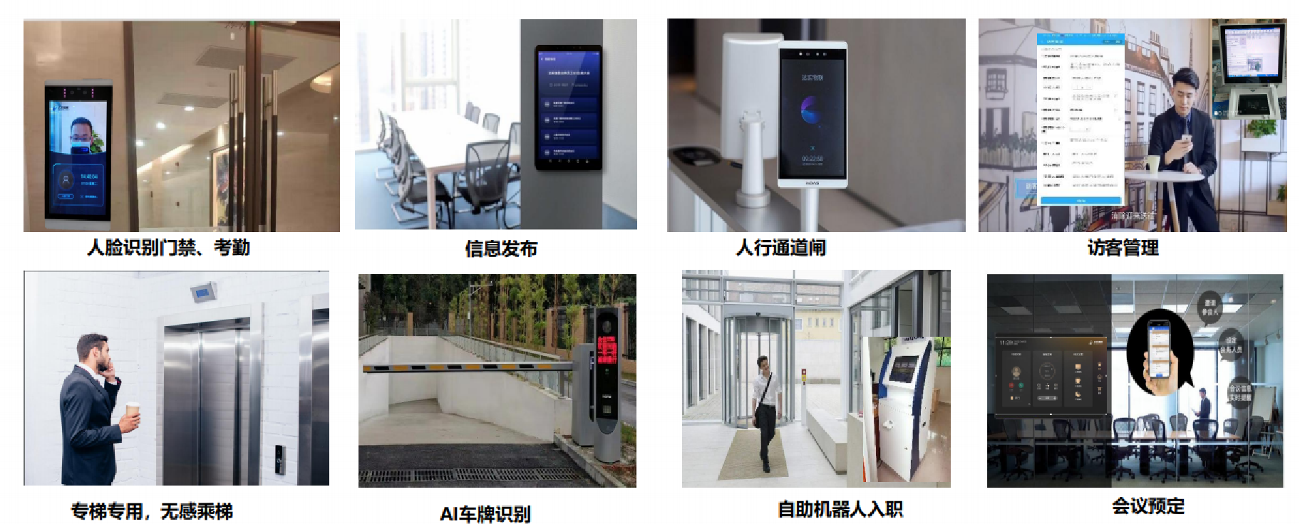 服务平台: 园区智慧服务平台可实现一卡通行、考勤、就餐消费、线上报修、缴费、访客预约、公共空间预定、预约订餐、信息发布,入驻园区后可办理注册开户手续。 智慧能耗: 园区配电、排水、空调、电梯、安防等系统设施设备纳入智慧平台,联系服务中心进行账号绑定、建档手续。